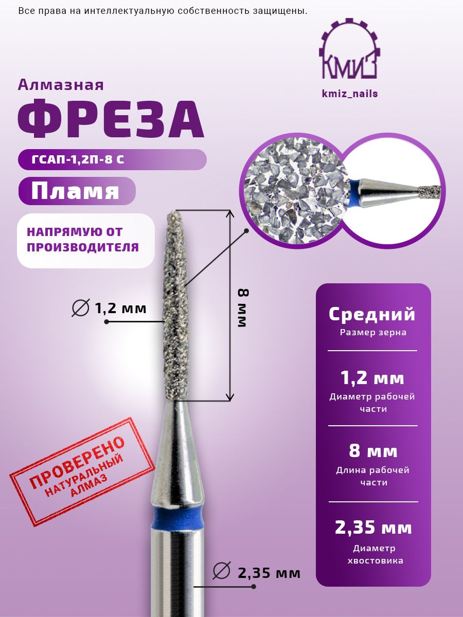115393 Фреза алмазная головка КМИЗ ПЛАМЯ ГСАП-1,2П-8С