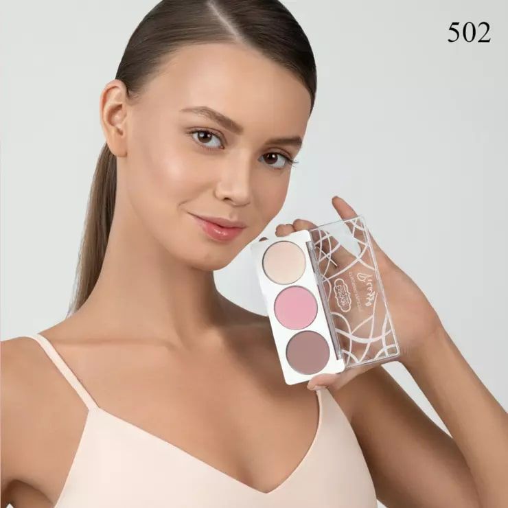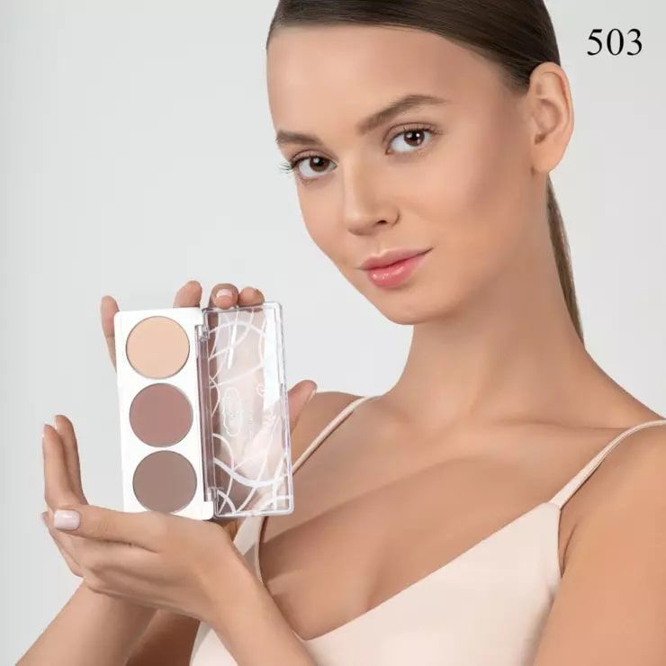 503 – два универсальных оттенка скульптора дополняет нежнеи?ший сатиновый хаи?лаи?тер. С ними ты создашь естественную тень на своем лице, сделаешь овал более четким, добавишь сияния;