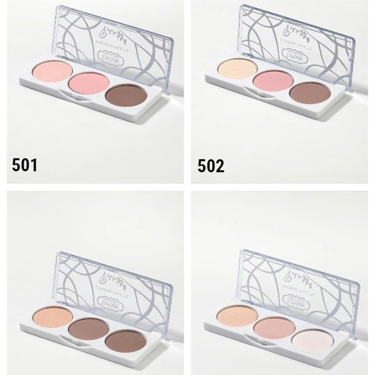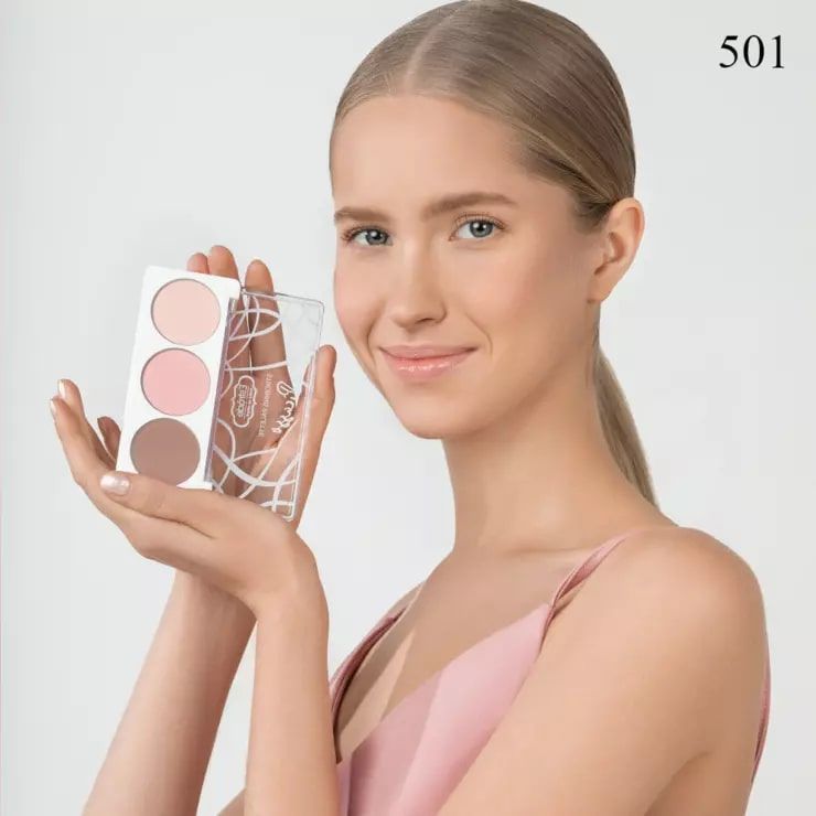 501 (теплая) и 502 (холодная) – состоят из трех компактных универсальных продуктов: хайлайтера, румян и скульптора.