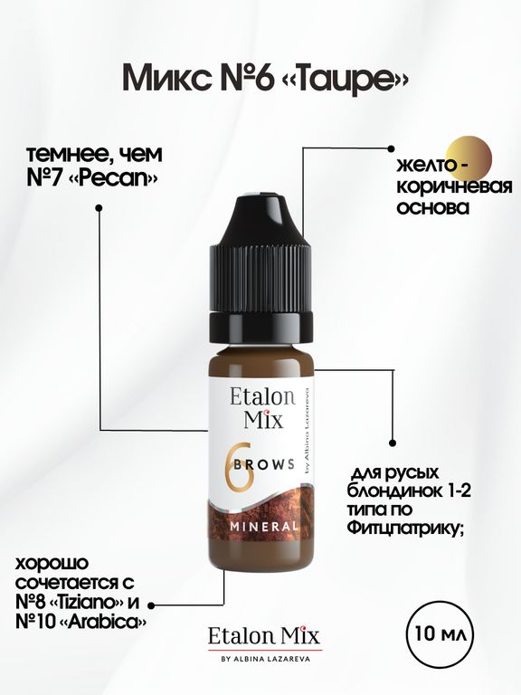 EtalonMix Пигмент для бровей №06 «Taupe» mineral series , 10мл