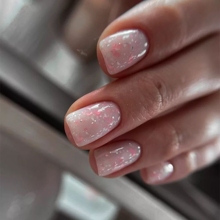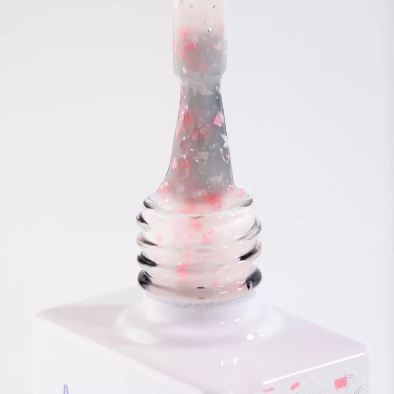 Гель-лак молочный, с красно-серебряной поталью, полупрозрачный
