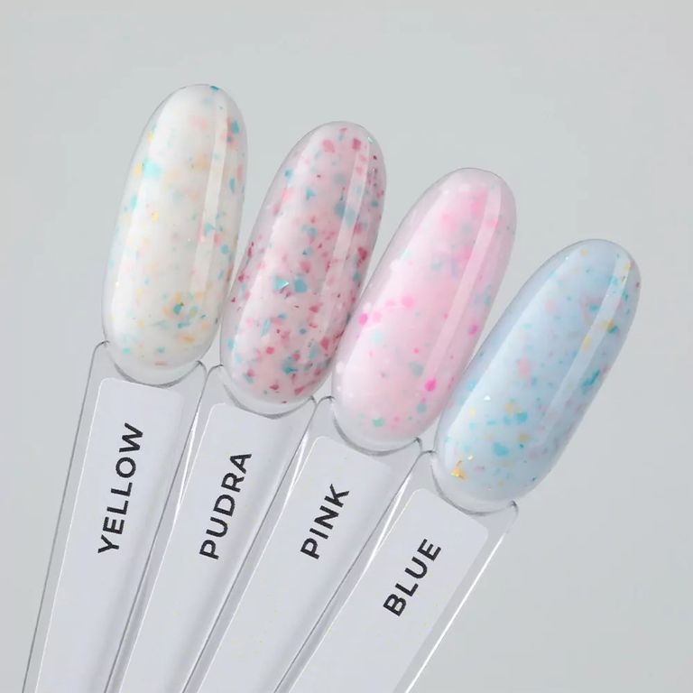 База Potal Yellow – этот оттенок представляет собой нежно желтую базу с частичками потали разного цвета. Она придает ногтям свежий и яркий вид, подчеркивая натуральную красоту и ухоженность.