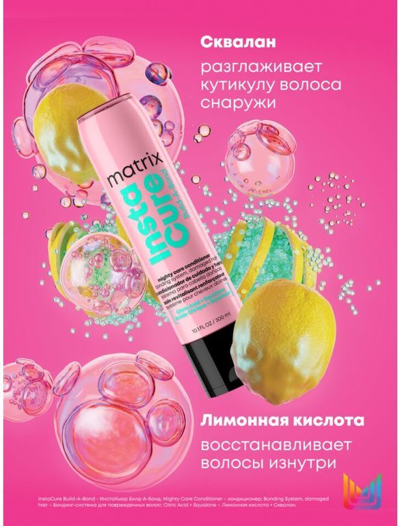 Профессиональный кондиционер для поврежденных волос Instacure Build-A-Bond (Инстакьюр Билд-А-Бонд), 300 мл – для восстановления волос, пострадавших от окрашивания, обесцвечивания, применения термоинструментов или других стресс-факторов. Благодаря технологии восстановления миллиарда связей истонченные и ломкие волосы становятся в 8 раз сильнее.*