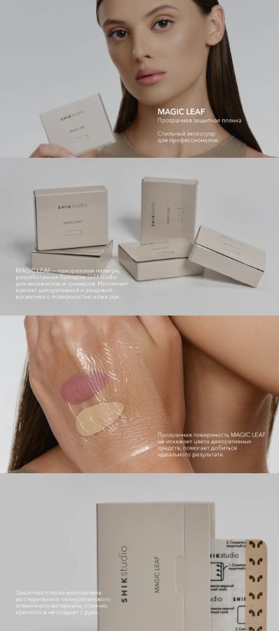 MAGIC LEAF — одноразовая палитра, разработанная брендом SHIKstudio для визажистов и гримеров. Исключает контакт декоративной и уходовой косметики с поверхностью кожи рук.