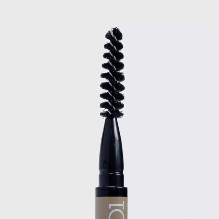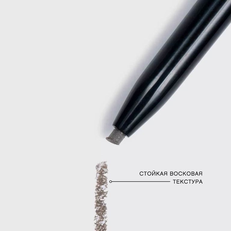 С одной стороны карандаша - тонкий стержень slim, который позволяет скорректировать форму бровей и добавить цвет, по желанию рисуя широкую или тонкую линию в технике микроблендинга, закрашивая пустоты.