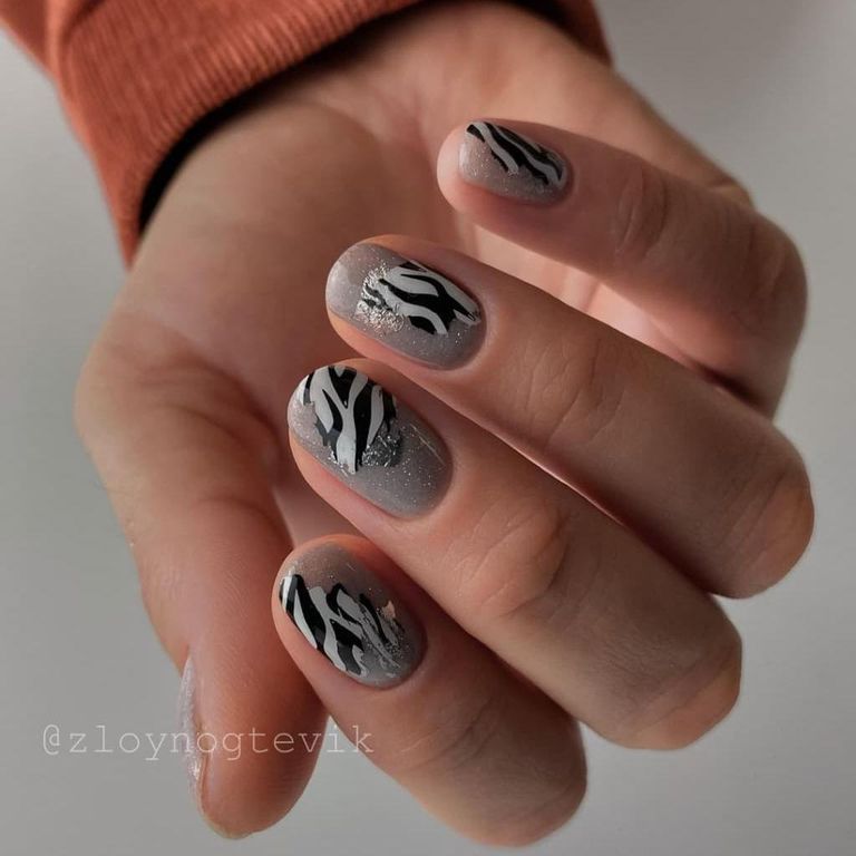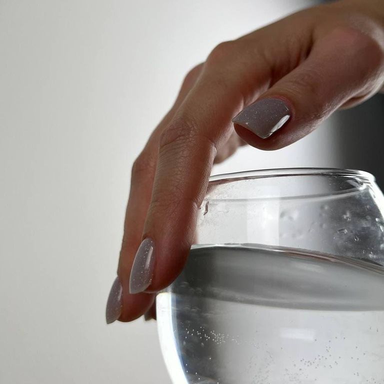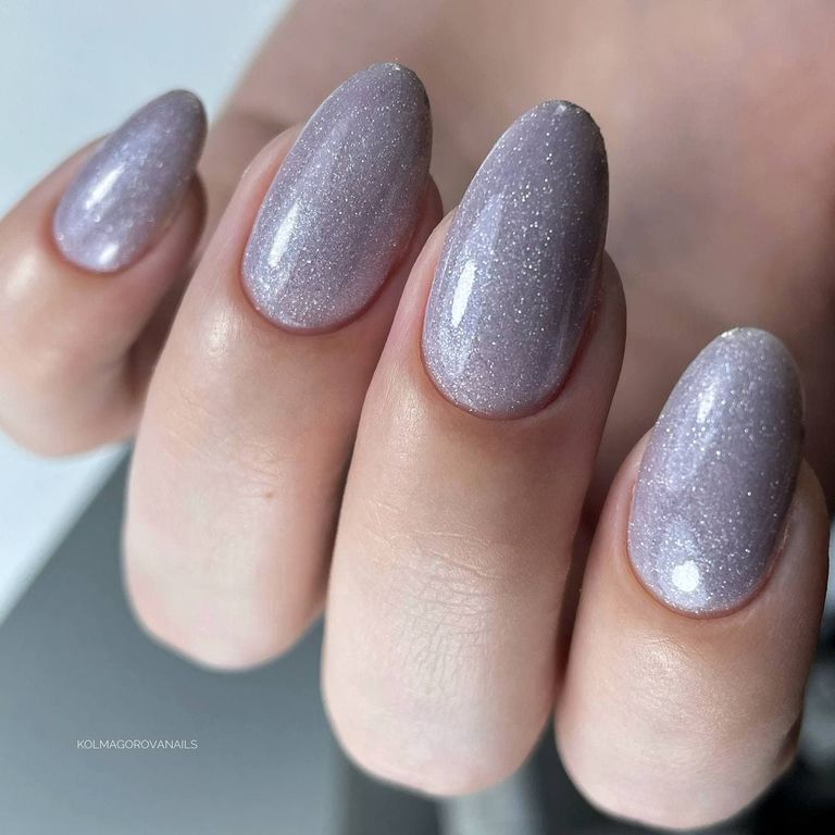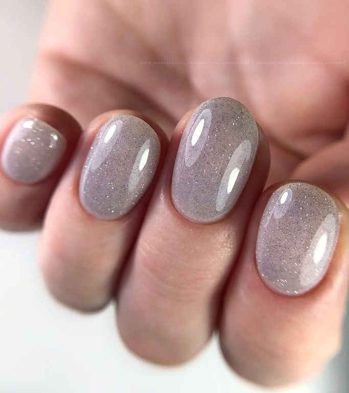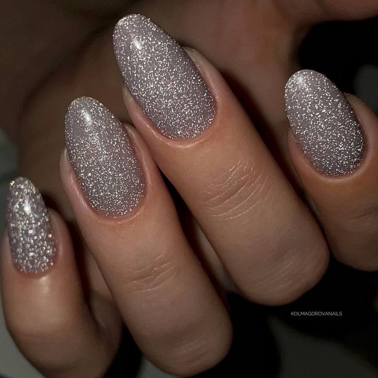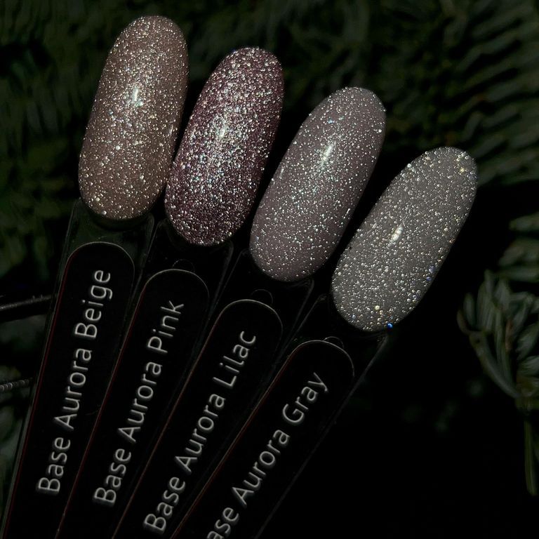 База серого цвета со светоотражающими блестками, полупрозрачная.