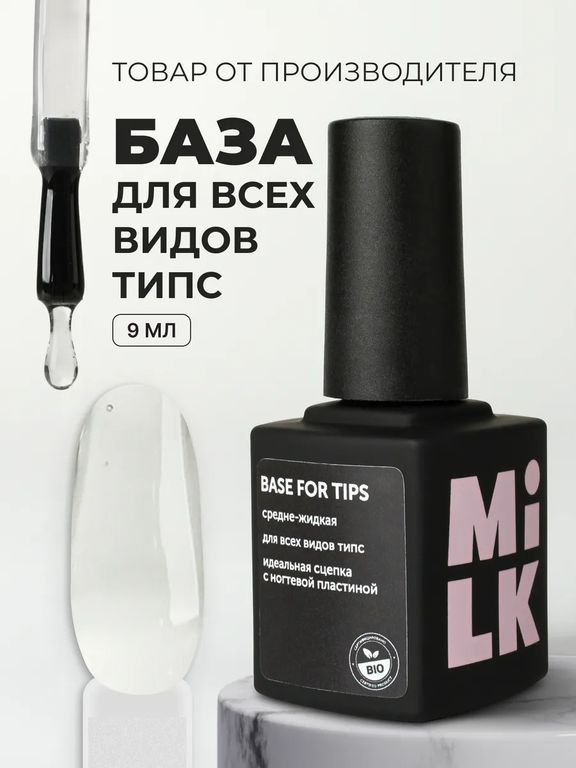 Прозрачная база для типс милк - имеет средне-жидкую консистенцию и обеспечивает высокую сцепку с ногтевой пластиной. Легко выравнивает, не течет и не создает дополнительного объема. Благодаря ультрапрочной формуле, эта база подходит для любых видов накладных ногтей и всех видов типс.