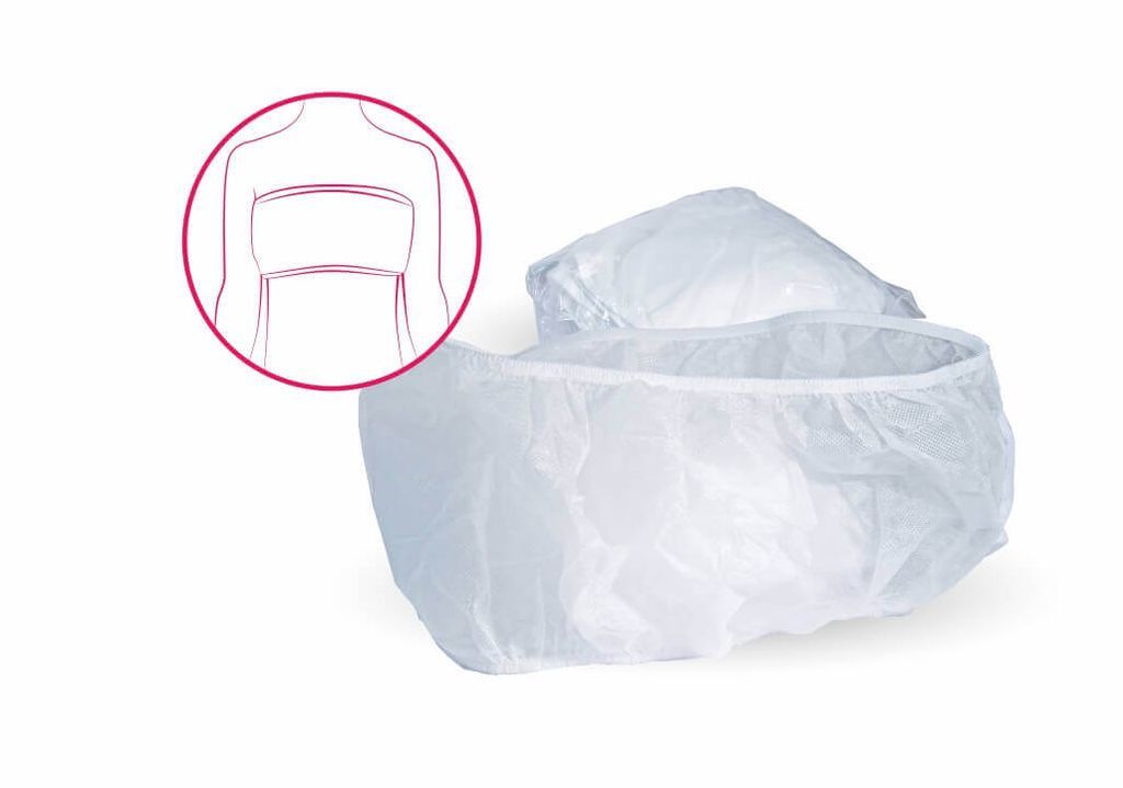 Комплект одноразовых бюстье от IGRObeauty из нетканого полотна SMS, собранного на резинку. Используются для прикрытия женской груди при косметологических процедурах.
