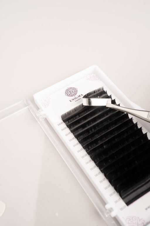 Ресницы Enigma Light изготавливаются из высококачественного классического волокна, упругие, ультрачерные, не деформируются в процессе работы и отлично держат форму во время носки. Легко миксовать с ресницами Enigma благодаря схожести изгибов. Фольгированная подложка удобна в применении, планшет всегда остается чистым. Лэшкарта вынимается из палетки.