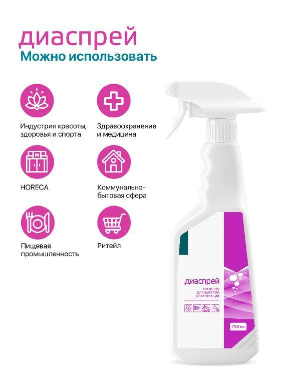 Диаспрей 750 мл, дезинфицирующее средство для поверхностей