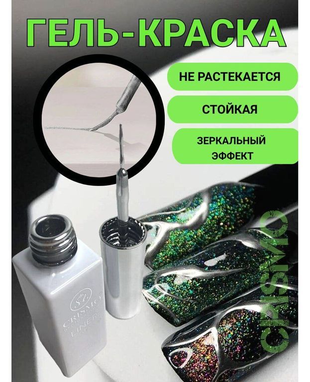 Гель краска для ногтей подходит для нейл-дизайна, френча и вензилей, геометрических узоров и стемпинга, для полного покрытия и для прорисовки тонких линий. Зеркальная краска имеет среднюю консистенцию и идеально ложится на ногти. Хром гель краска не растекается и не полосит.