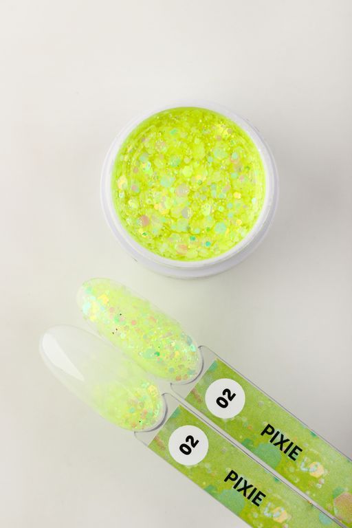 Укрась ногти этой витражной гель-краской сочного лимонного оттенка с россыпью яркого глиттера. Волшебное настроение обеспечено!
