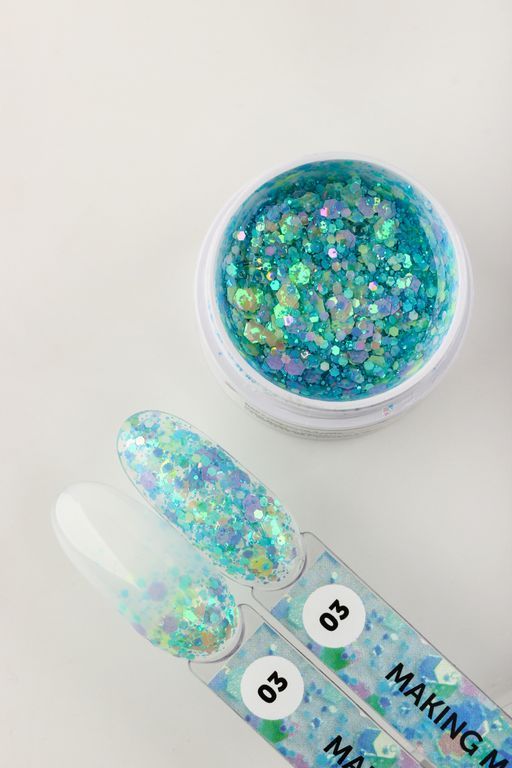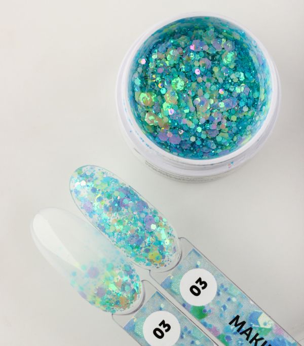 Каждый нейл-образ с этой голубой витражной гель-краской, наполненной сиреневым и бирюзовым глиттером — настоящее волшебство!