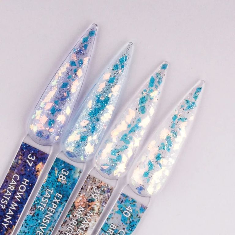 • Шикарный эффект бриллиантовых хлопьев любой однотон превратит в роскошный нейл-образ.