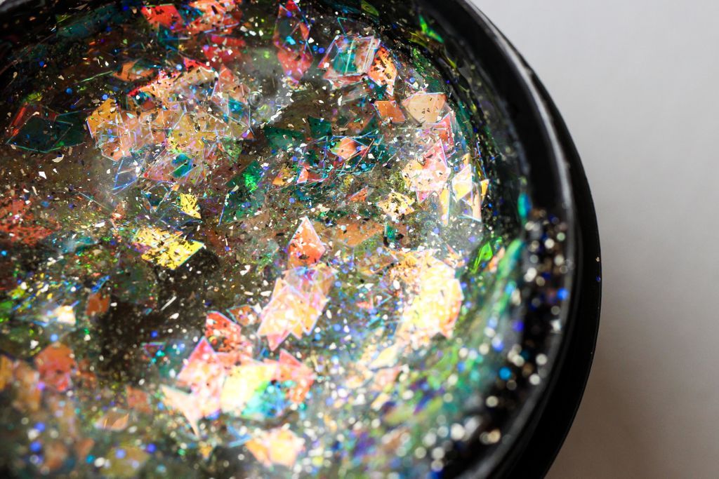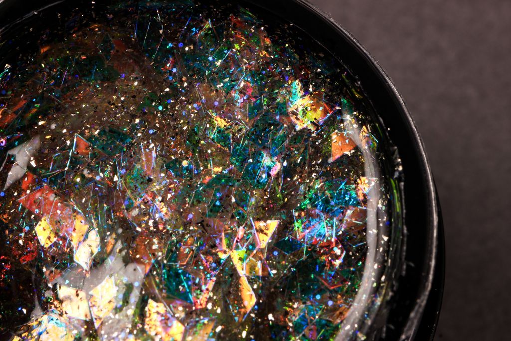 • Шикарный эффект бриллиантовых хлопьев любой однотон превратит в роскошный нейл-образ.