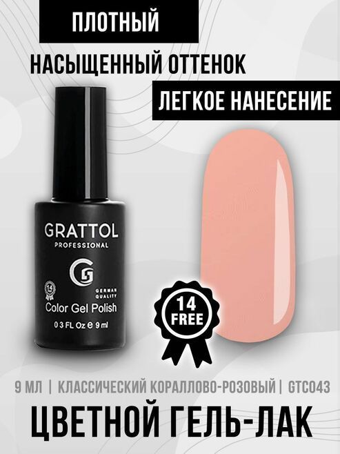 Гель-лак Grattol GTC043 Pink Coral, 9мл