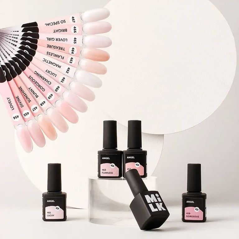 Angel — коллекция полупрозрачных камуфлирующих гель-лаков, созданных для деликатного, невесомого покрытия с эффектом натуральных ногтей.