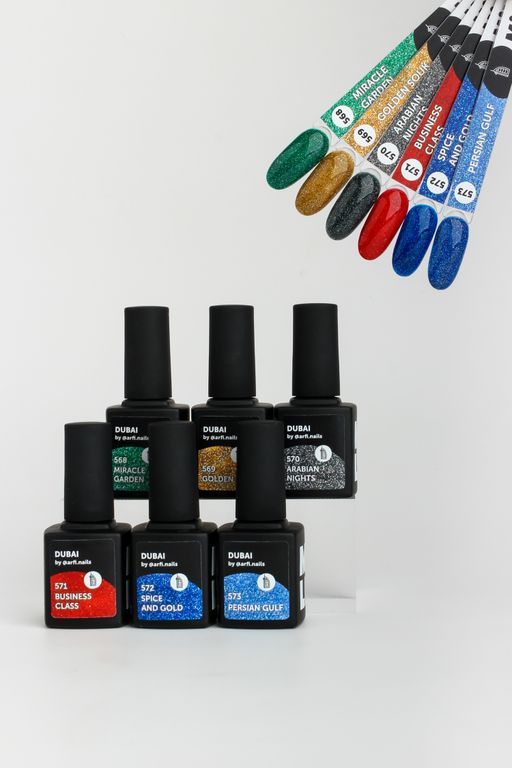 Dubai — коллекция светоотражающих гель-лаков. Стоит оттенку попасть под искусственное освещение, начинается волшебство! Экспериментируй с лучами света и создавай потрясающие фото и видео со своими нейл-образами. Цвета Dubai можно наносить соло или с цветной подложкой.