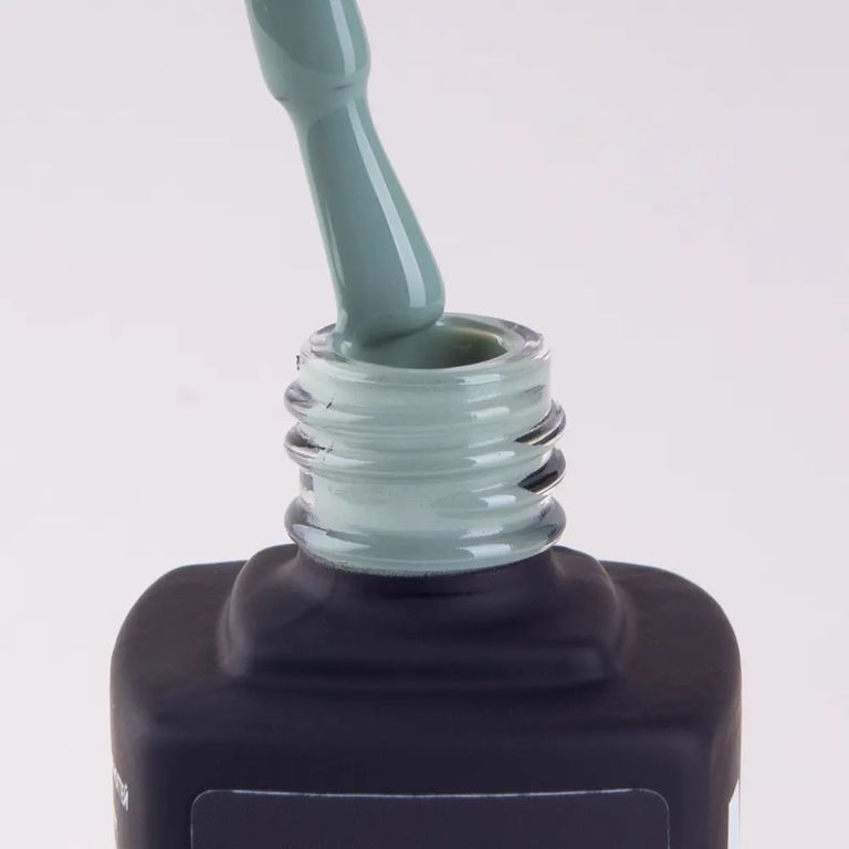 Необычный светлый серо-зеленый гель-лак — твой идеальный спутник на расслабляющих и наполняющих внутренней силой занятиях йогой.