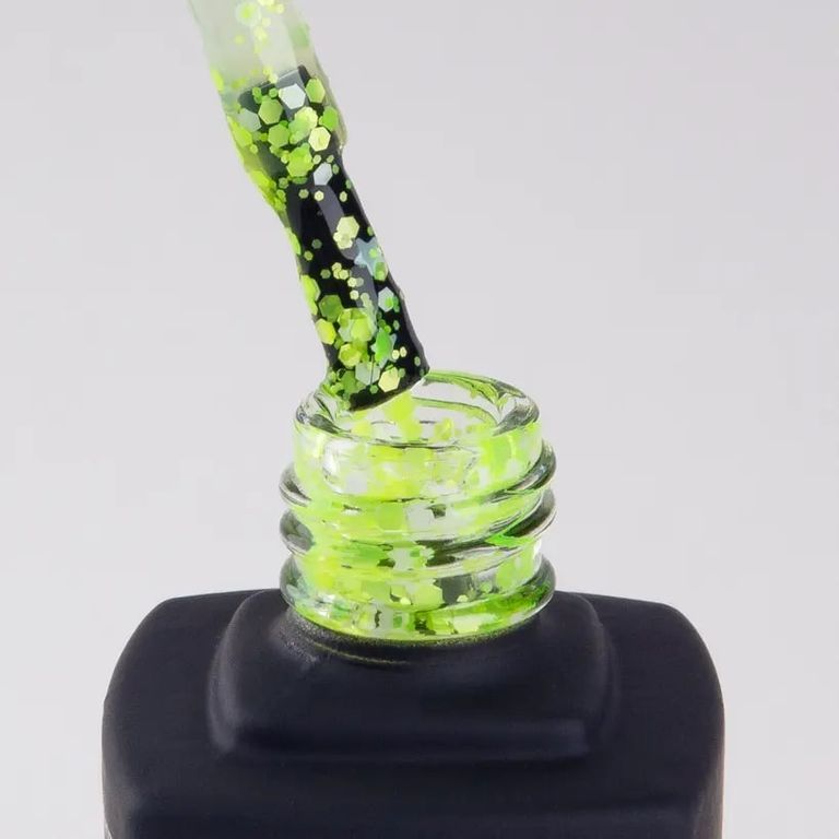 Превратить маникюр в завораживающее звездное небо? Мы знаем, как. Открой прозрачный гель-лак, наполненный миксом сочного лаймового глиттера в форме звезд и шестиугольников. А теперь начинай творить!