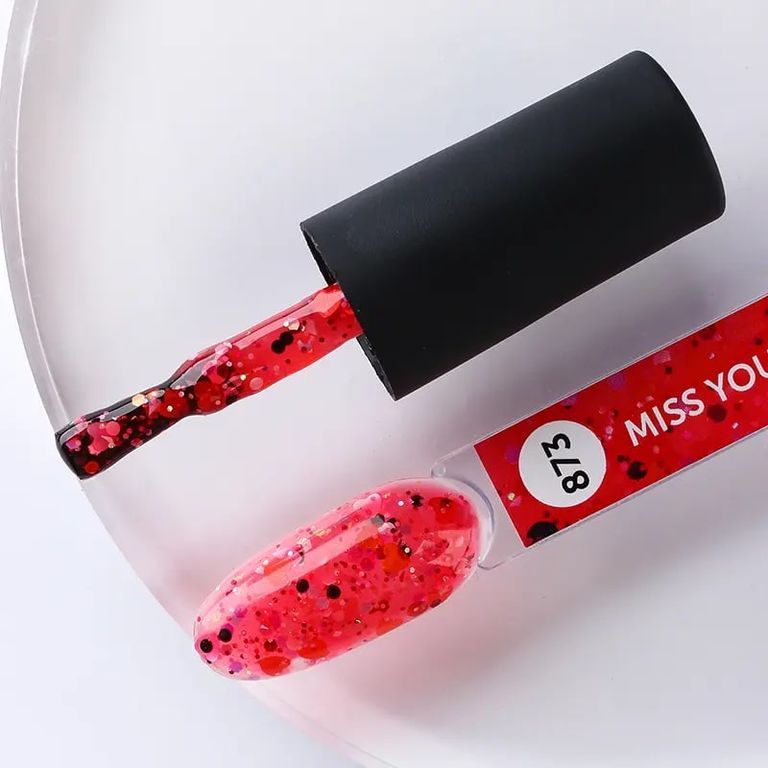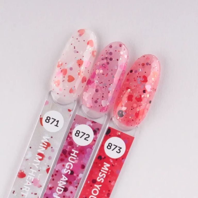Алый гель-лак с искрами глиттера и яркими красными сердечками — мастхэв для твоей романтичной весенней палитры. Готовы дарить красоту?