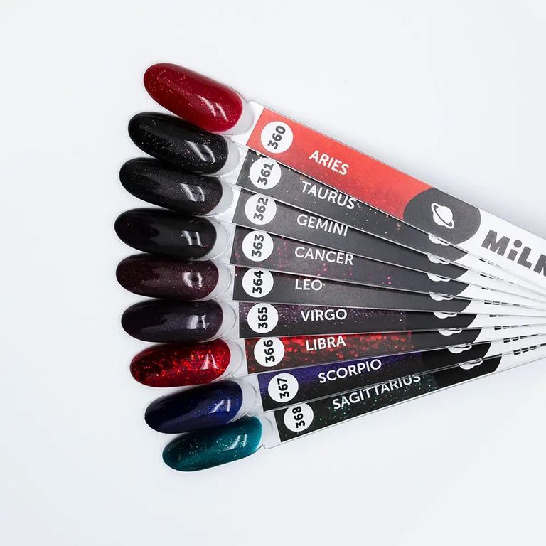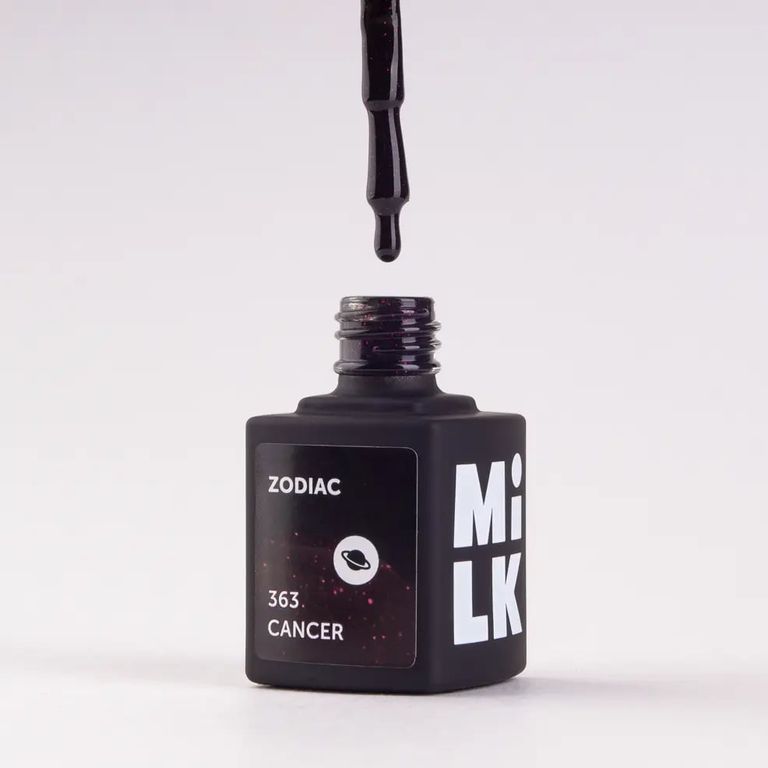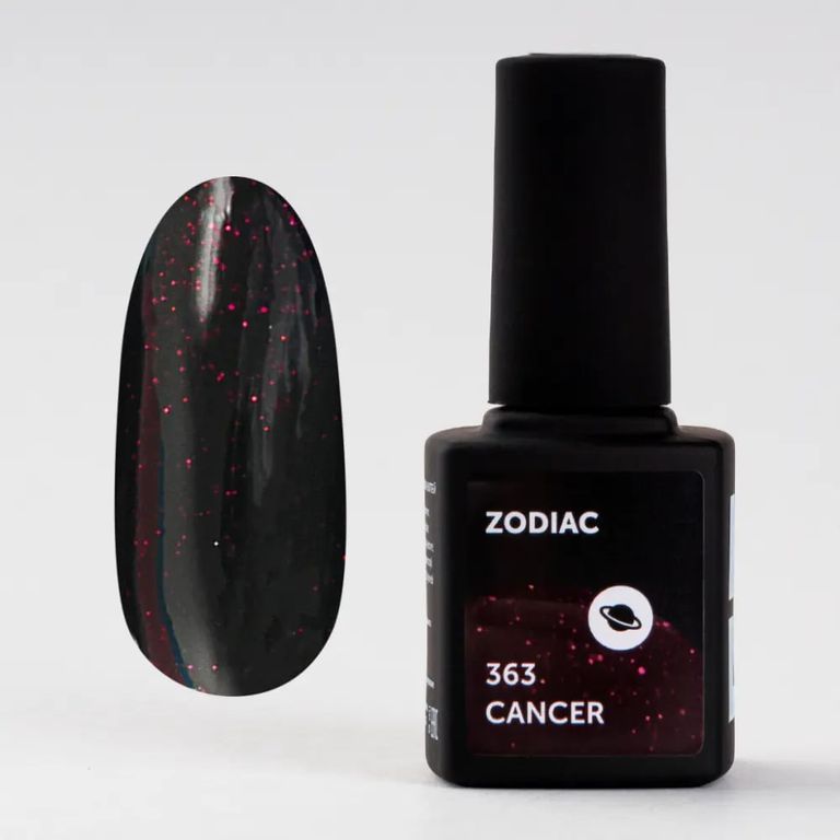 Люди, рожденные под знаком Рака, отличаются эмпатией. Внутри себя они несут огромную силу, которая помогает им влиять на окружающих и располагать их к себе. Глубокий черный гель-лак с россыпью шиммера цвета фуксии так же притягателен, как представители этого водяного знака.