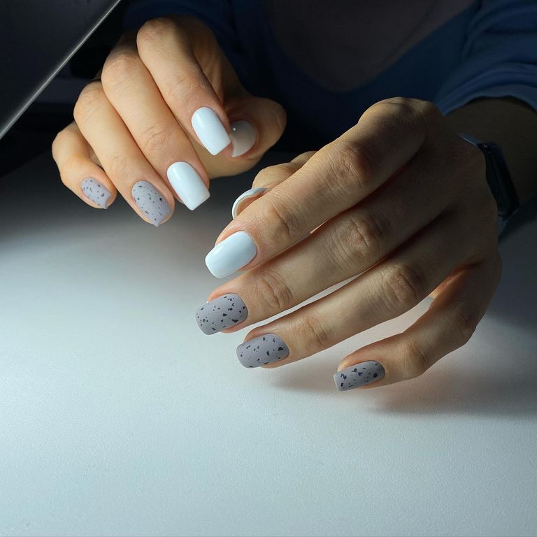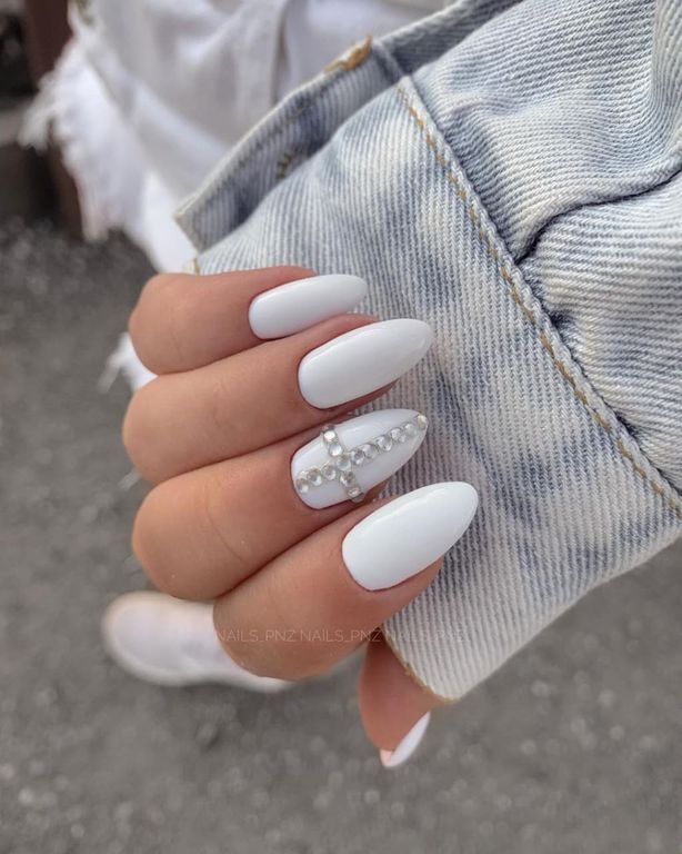 Гель-лак белого оттенка с синим подтоном, плотный.
