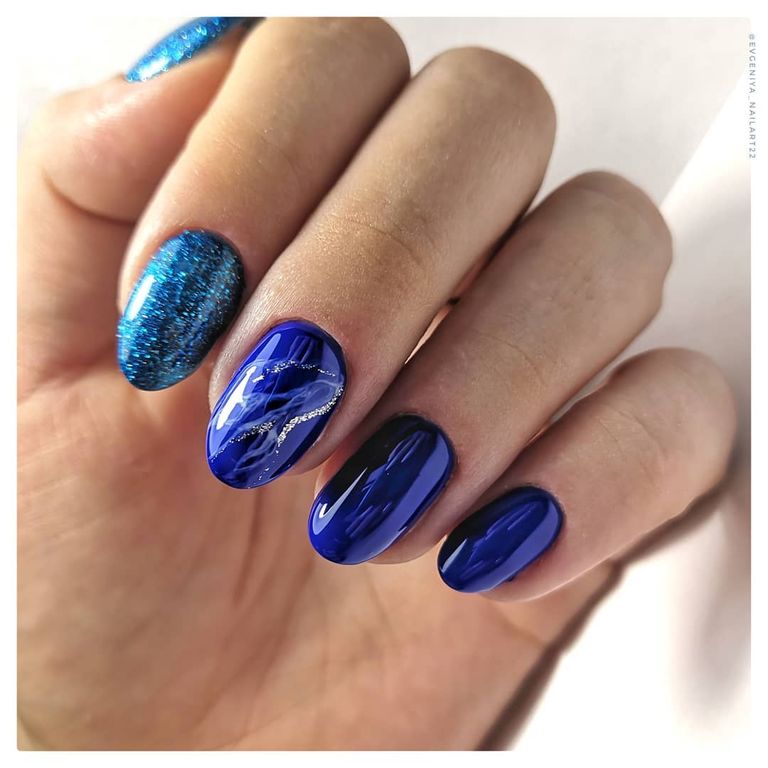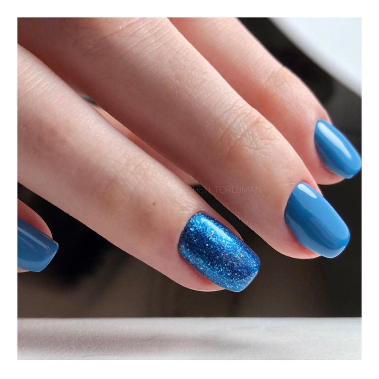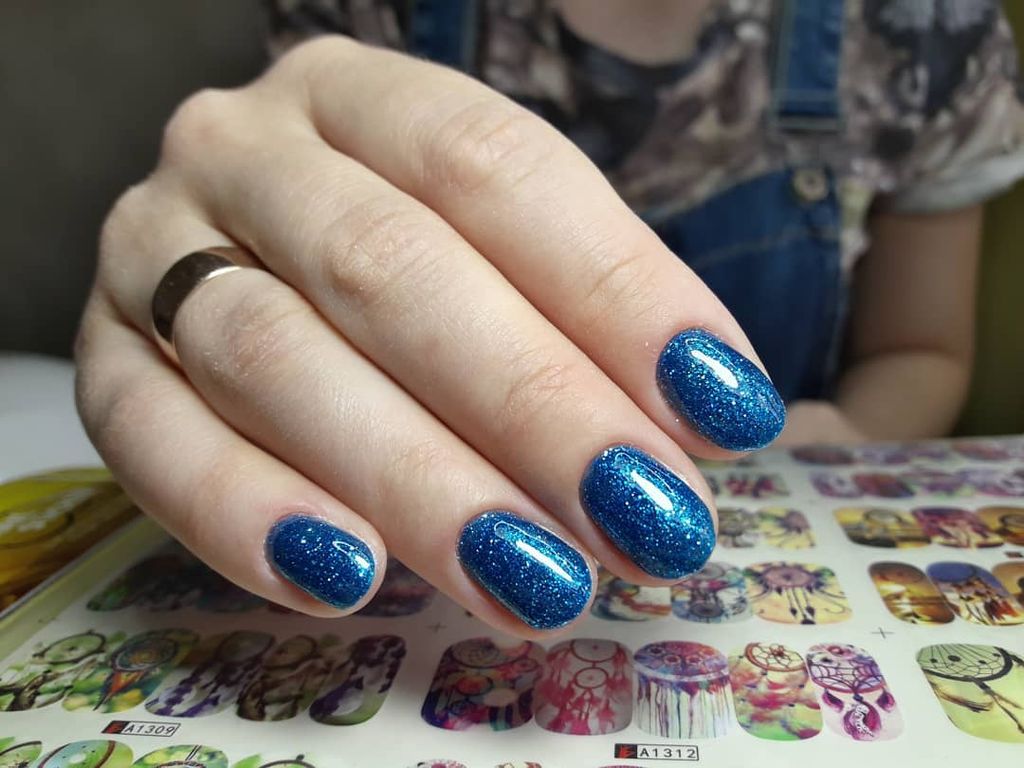 Гель-лак лазурный, с блестками, плотный.