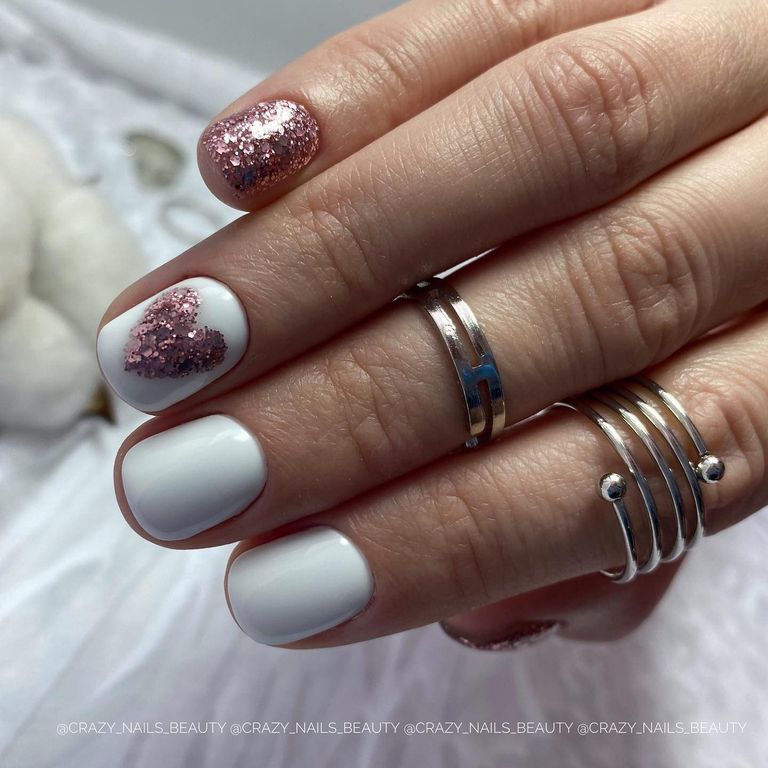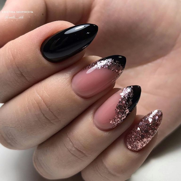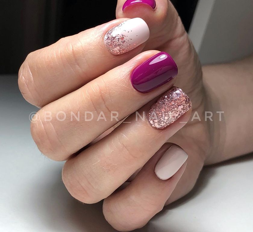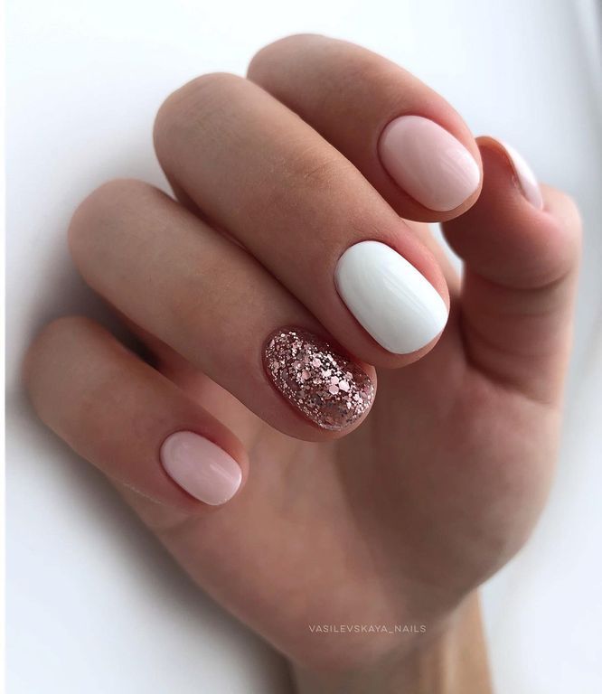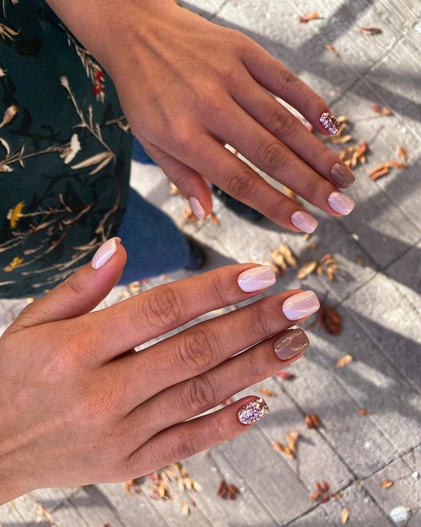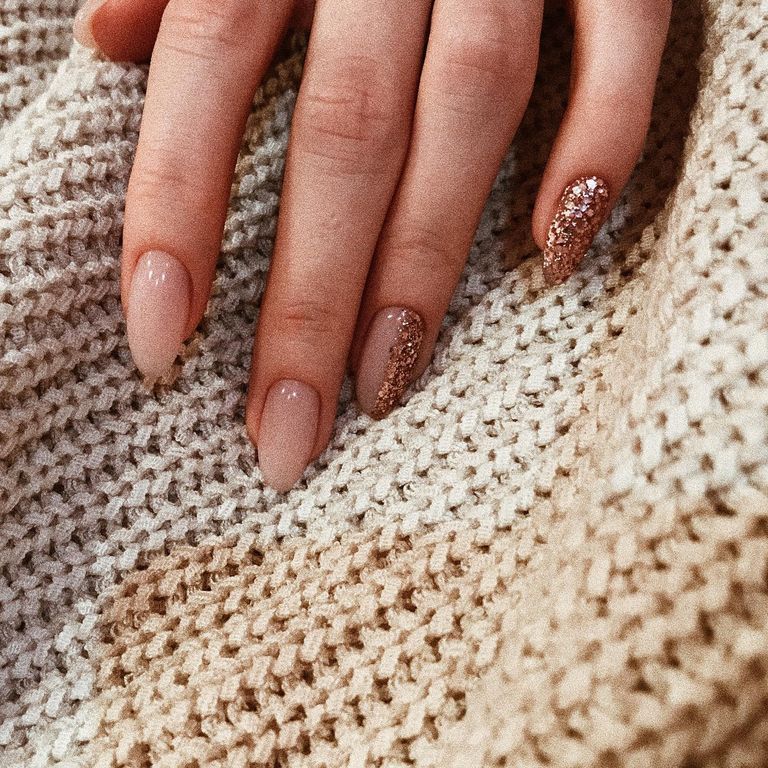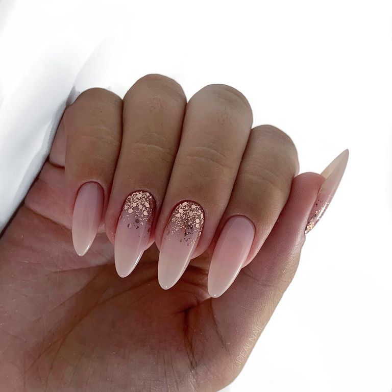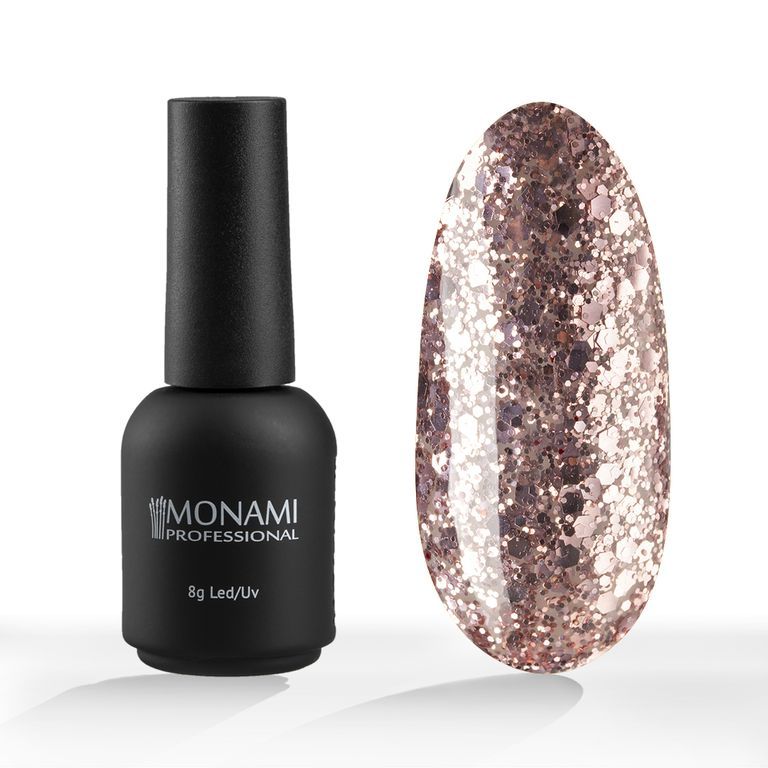 Гель-лак розовое золото, с блестками, полупрозрачное.
