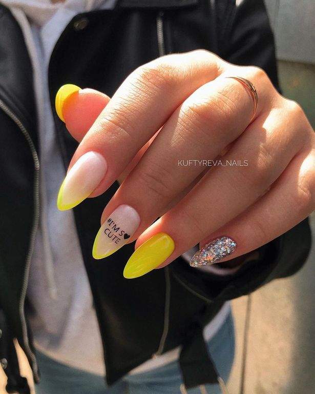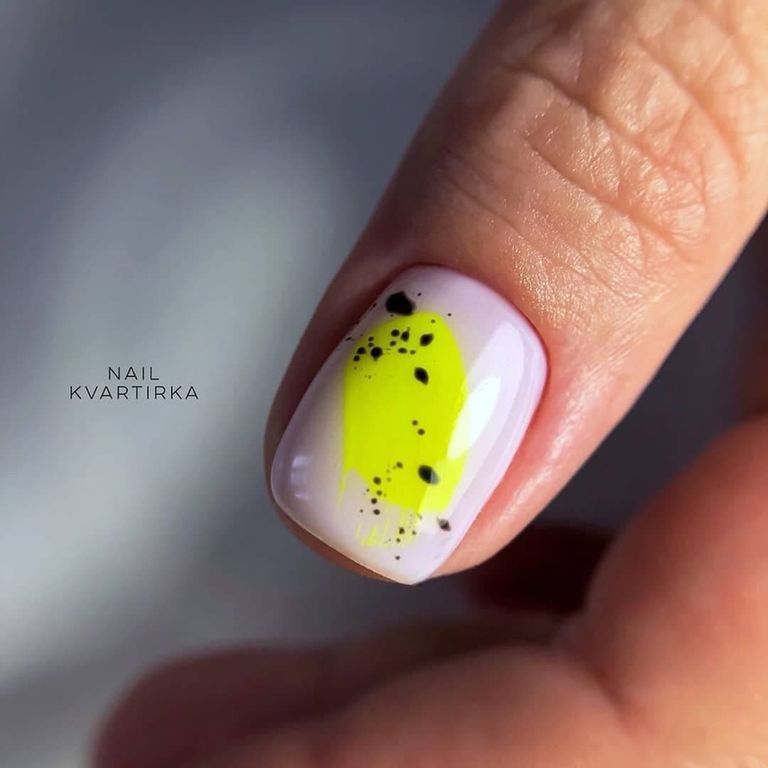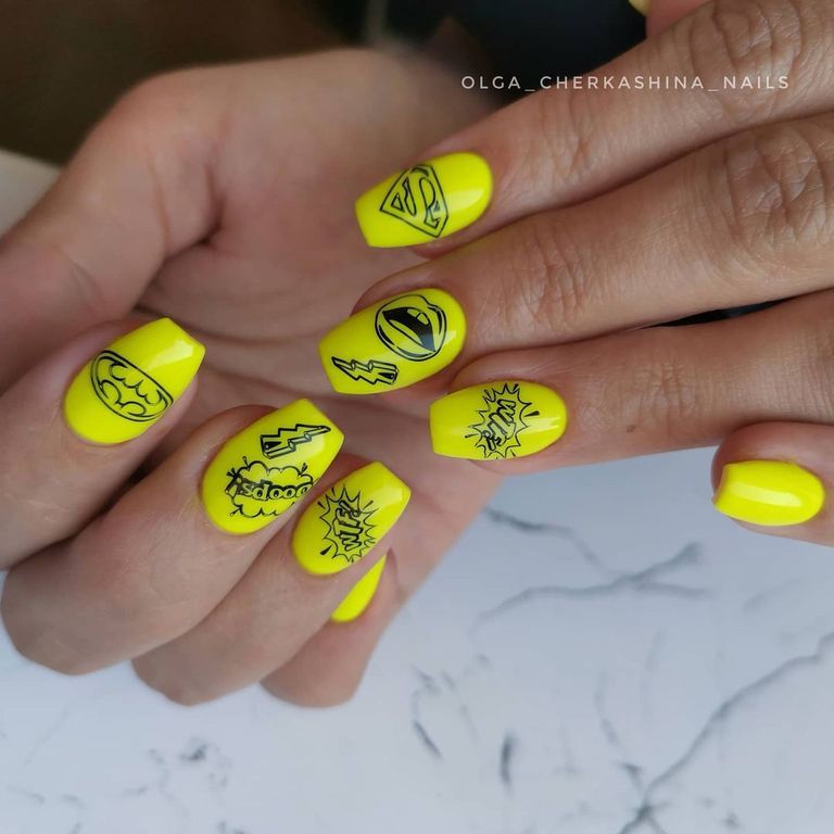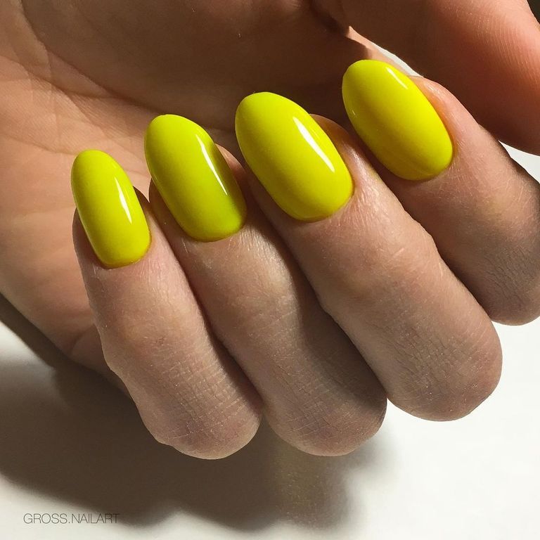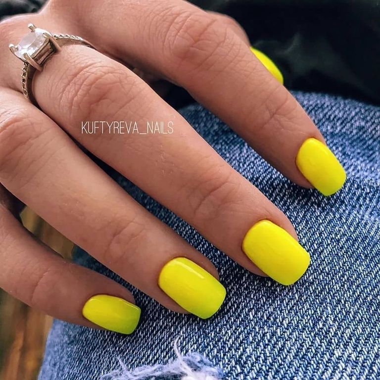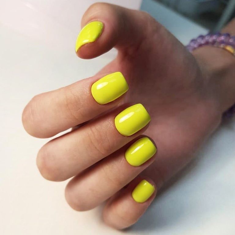 Гель-лак неоновый желтый, без эффекта, плотный.
