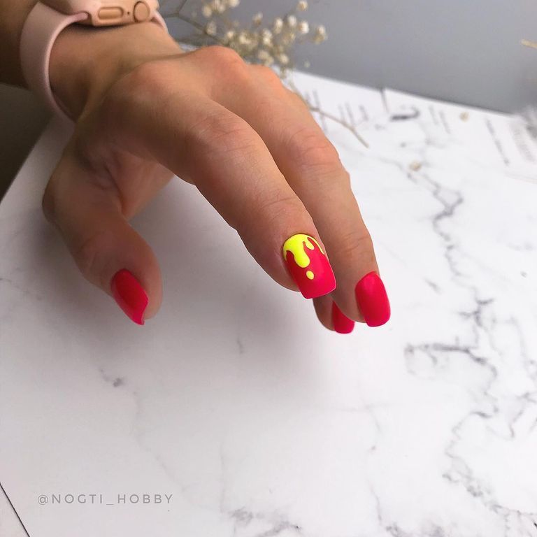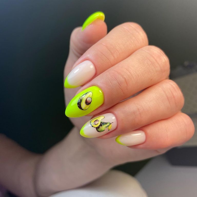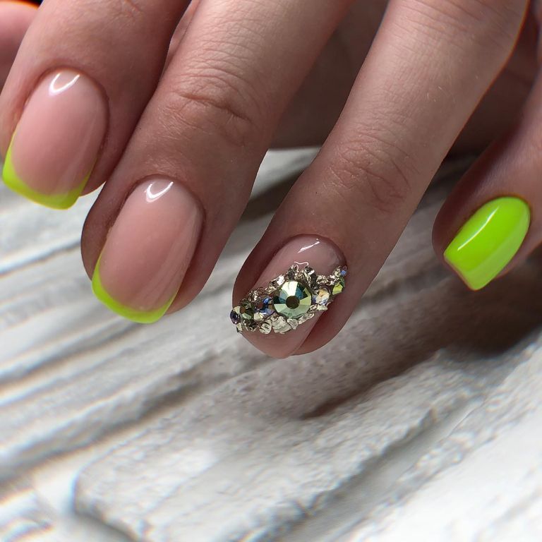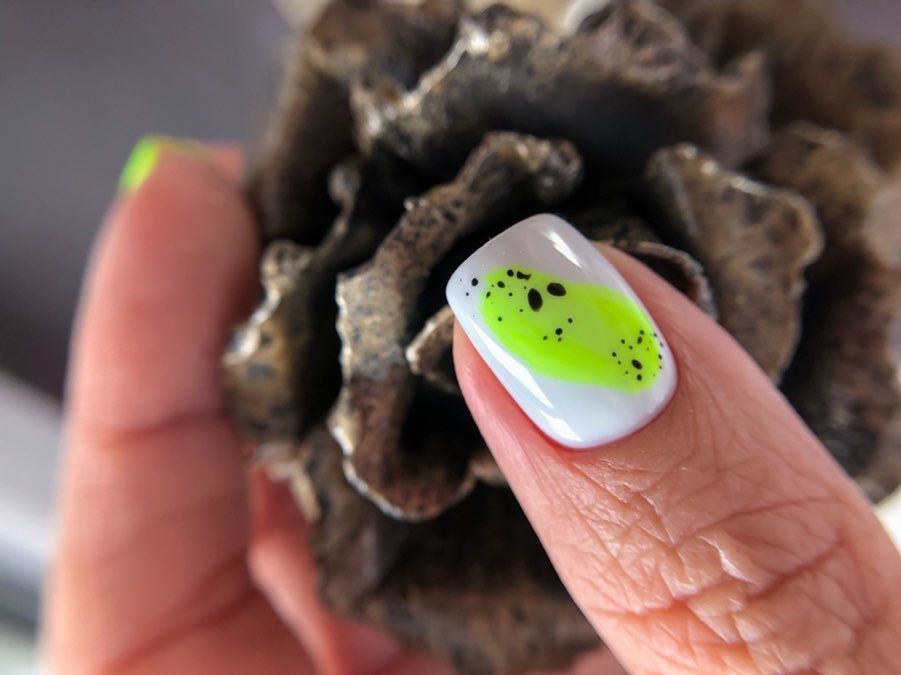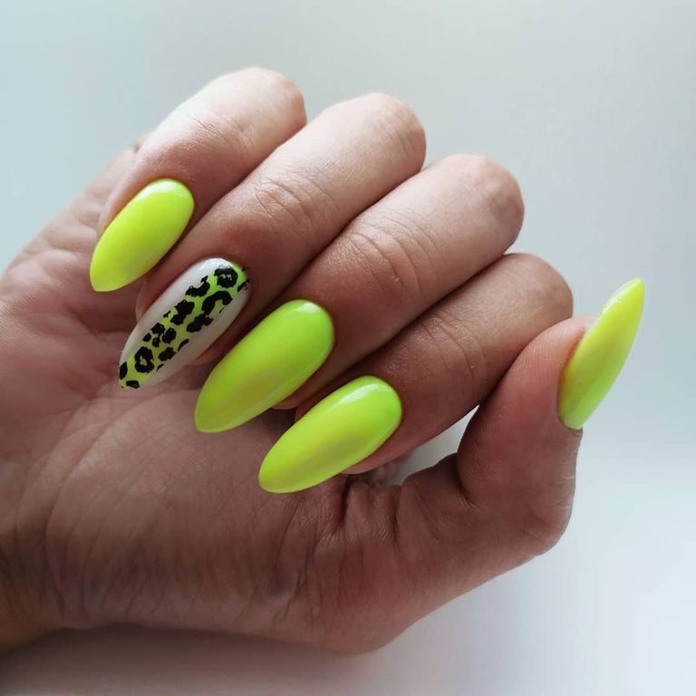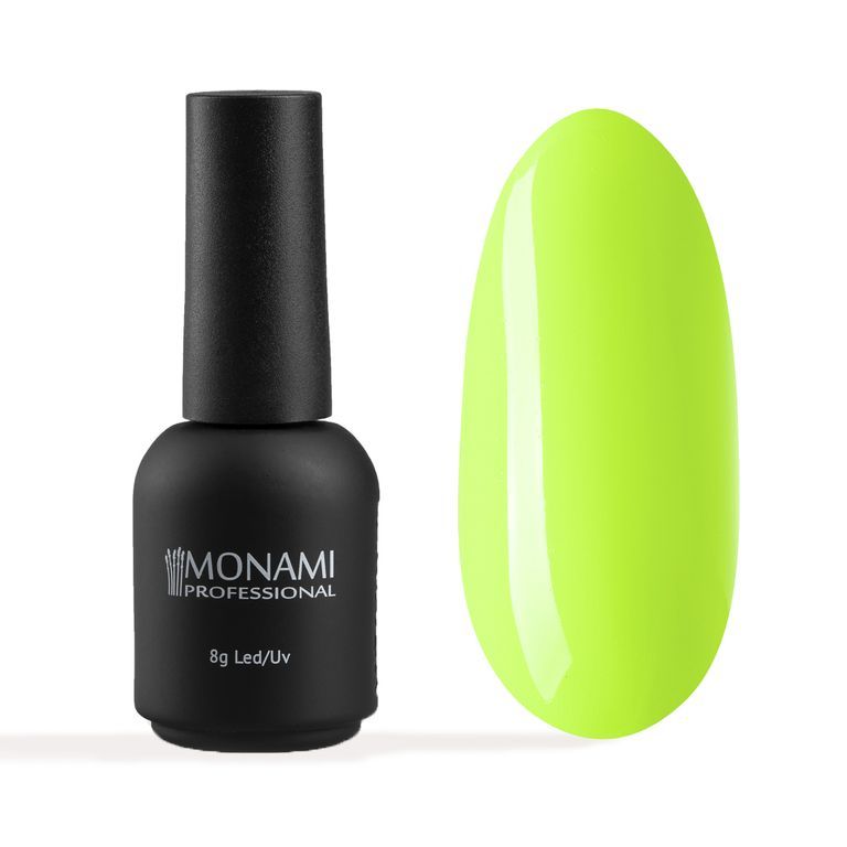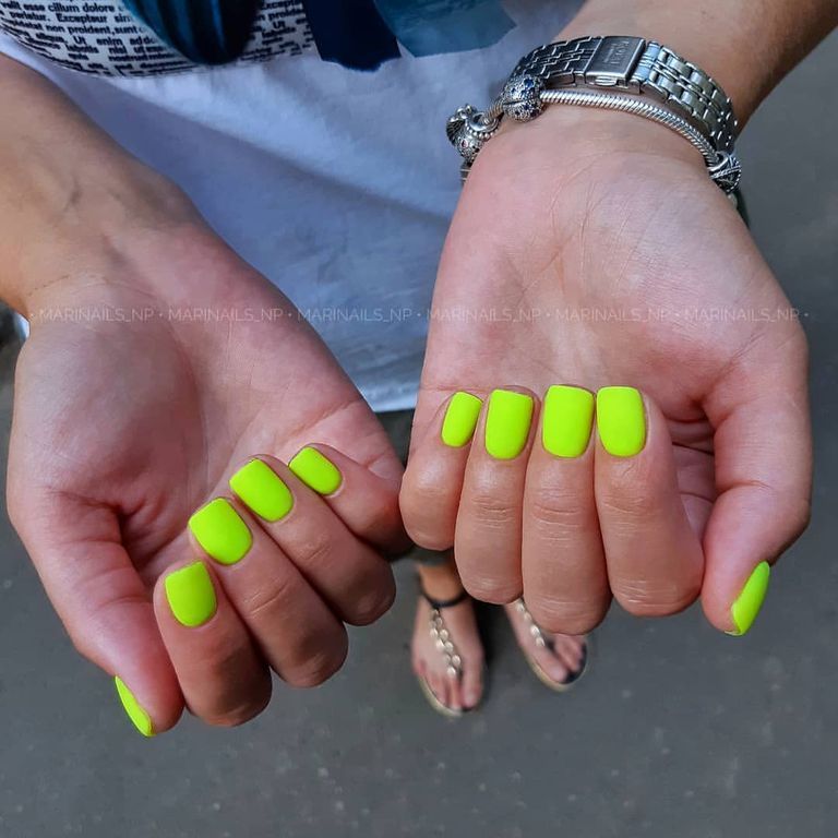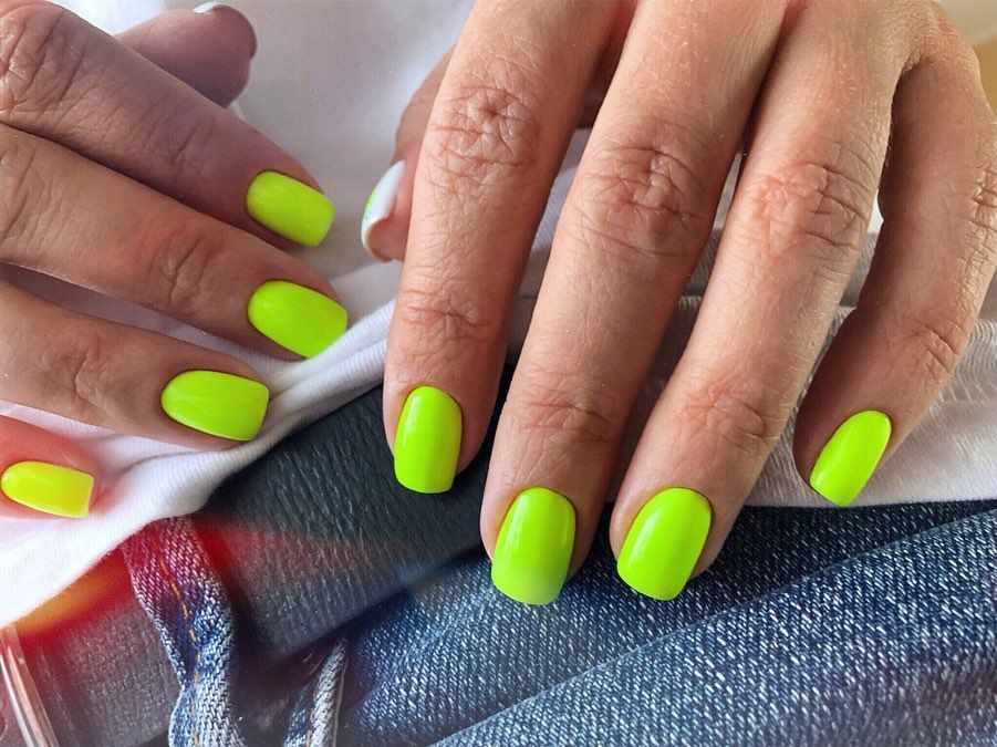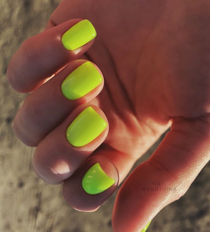 Гель-лак неоновый зелено-лаймовый, без эффекта, плотный.