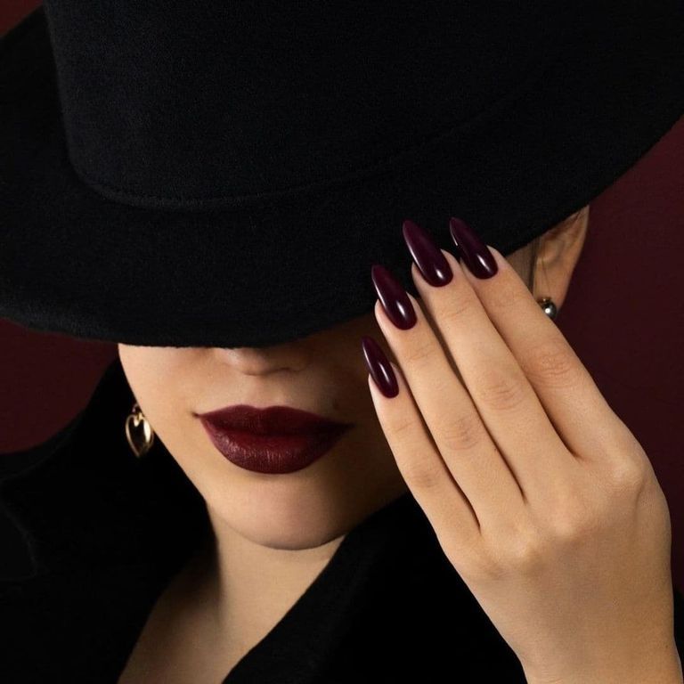Гель-лак бордового оттенка словно спелая вишня, без эффекта, плотный.