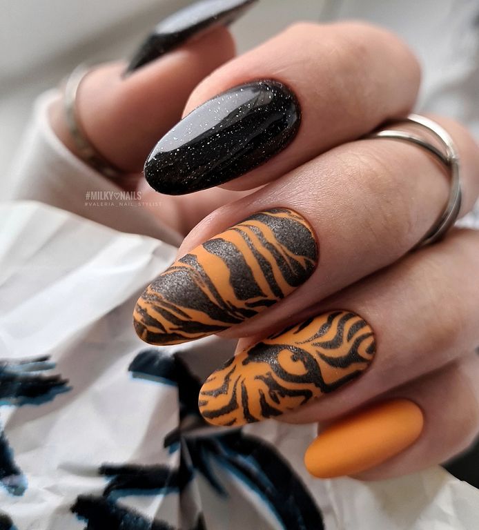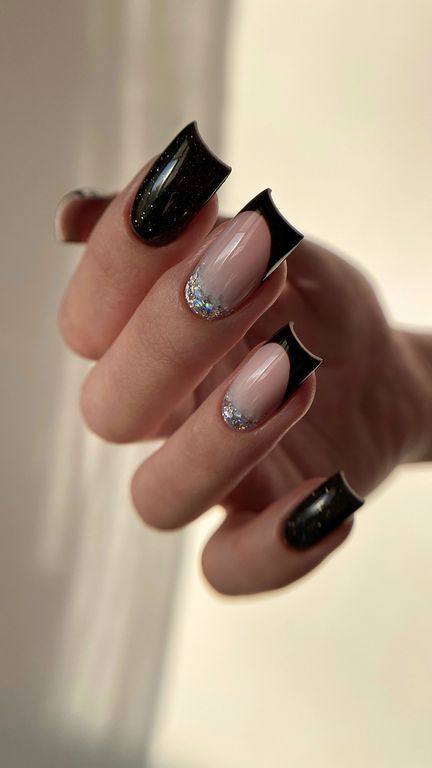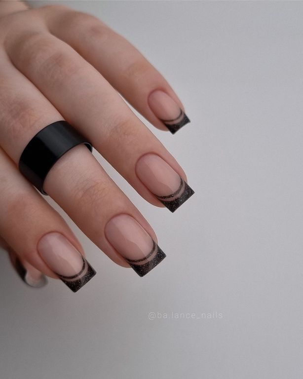 Гель-лак со светоотражающими частицами в черном оттенке.
