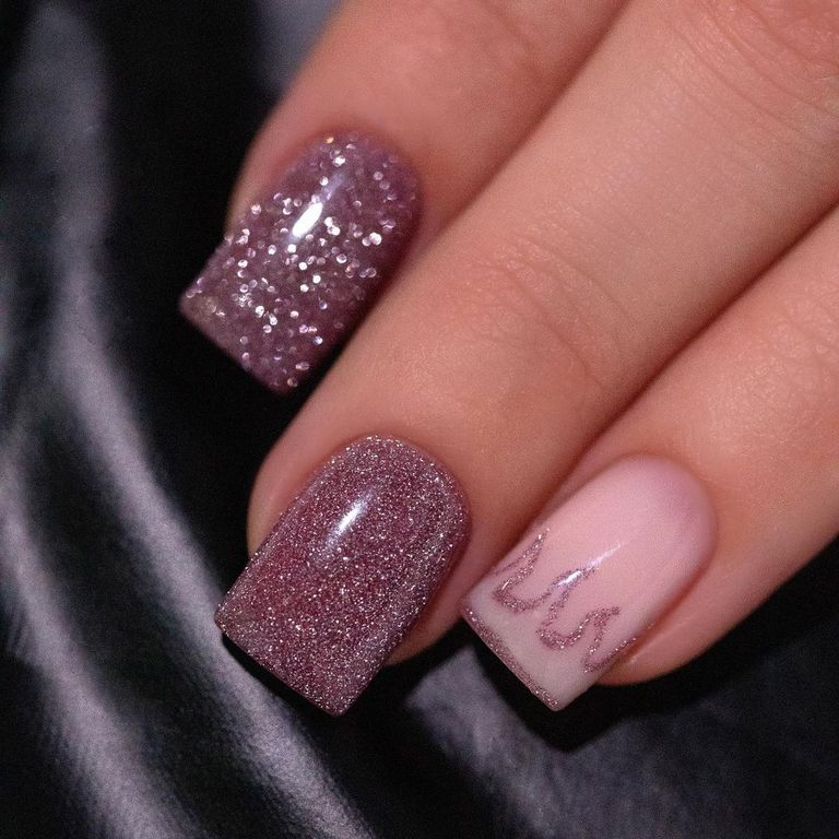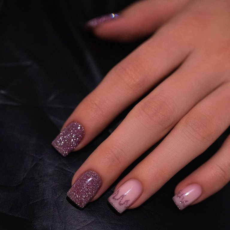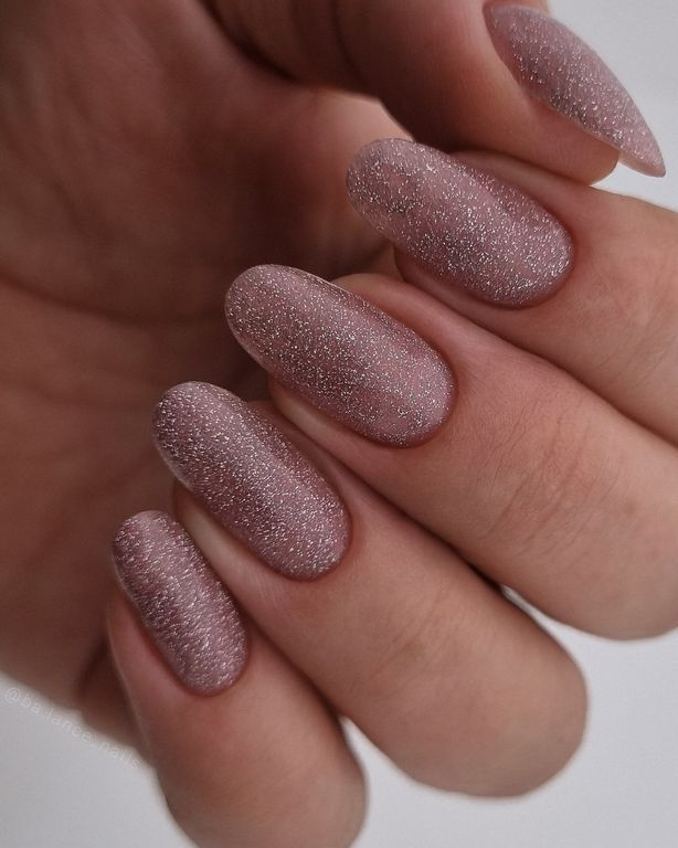 Гель-лак со светоотражающими частицами в розовом оттенке.