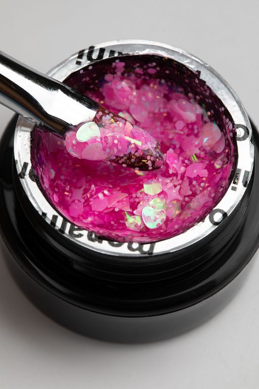 В составе гель-лаков арт-частички в форме бабочек, сердец и шестигранников, которые будут переливаться при каждом движении руки!