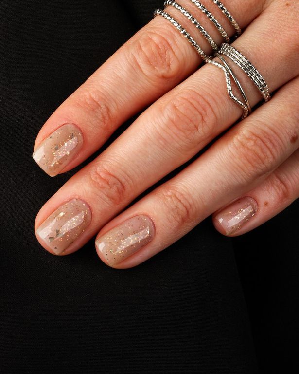 Что на ногтях у золотой девчонки? Без вариантов: только изысканный нюд с золотыми хлопьями потали. Идеально!