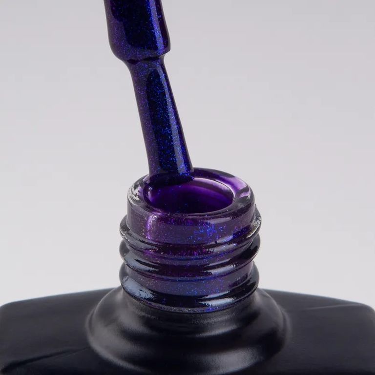Настоящая зведная феерия на твоих ногтях! Насыщенная темно-фиолетовая база с большим количеством сине-фиолетового шиммера завораживает не меньше, чем ракетное шоу в ночном небе.