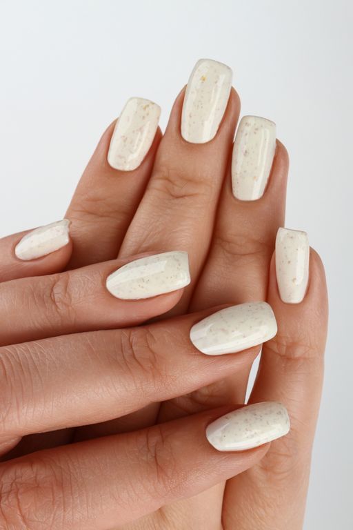 Рамен — из золотых цепочек, на ногтях — суперстильный оттенок айвори с золотой поталью. Роскошь — твое второе имя!