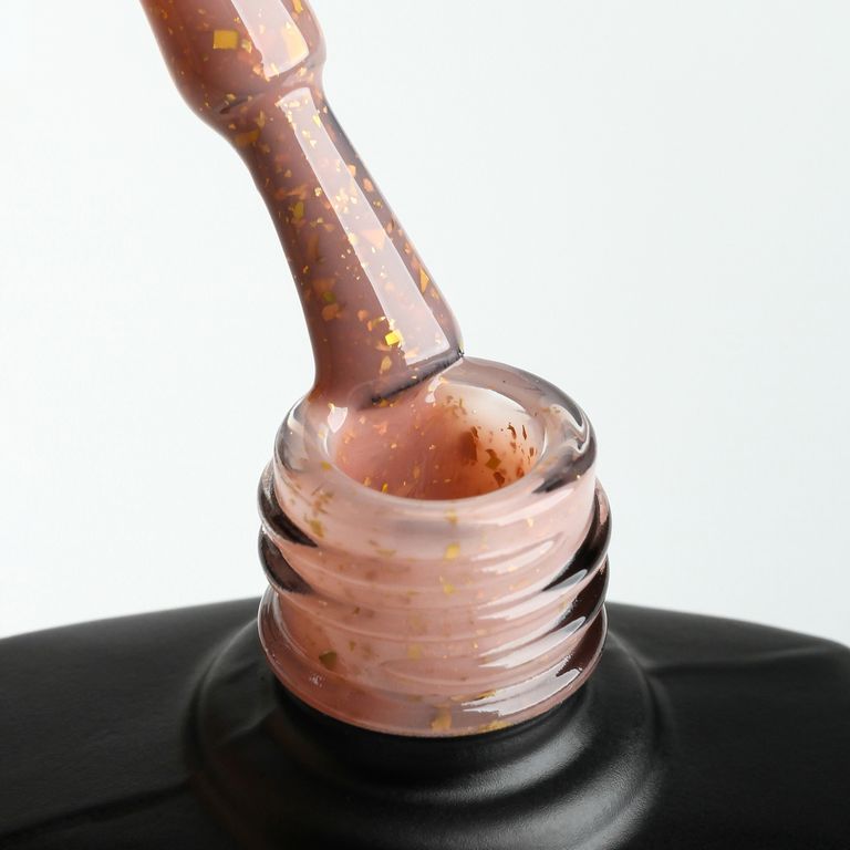 В тон твоему роскошному загару — выразительный карамельный гель-лак с вкраплениями золотой потали.