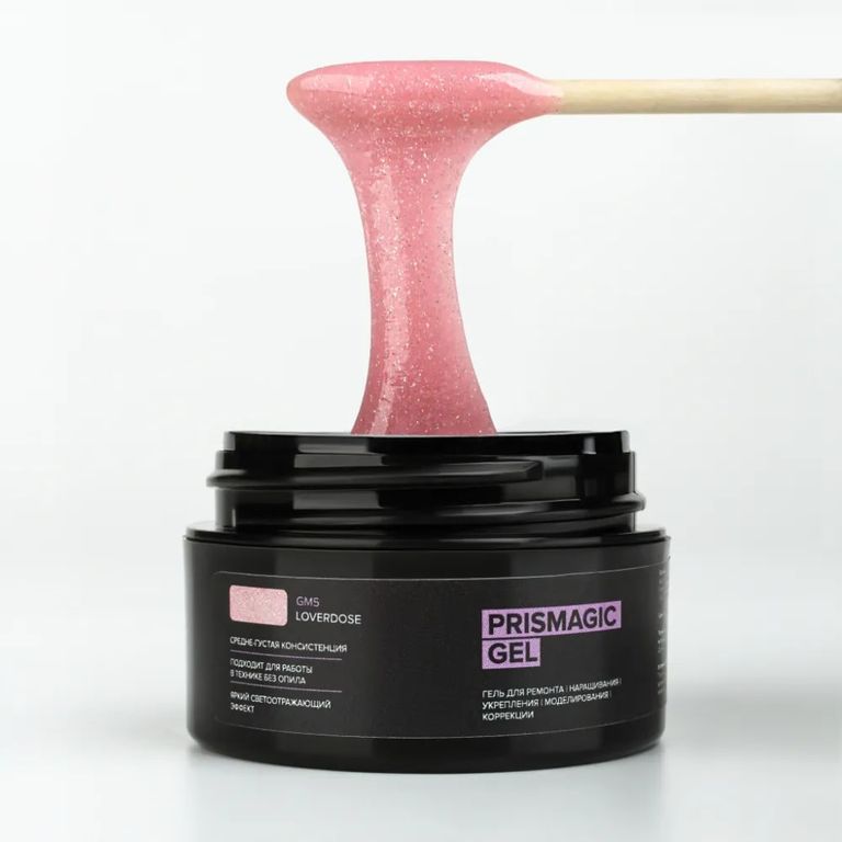 Это любовь с первого движения кисти! Романтичный розовый гель с ярко сияющими светоотражающими частичками понравится каждому клиенту.