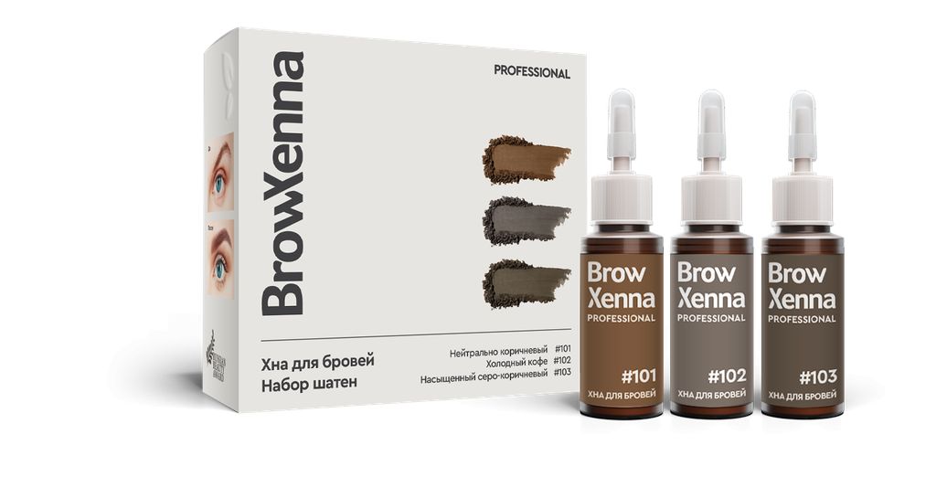 Хна для бровей BrowXenna набор 3 оттенка (101,102,103) Шатен