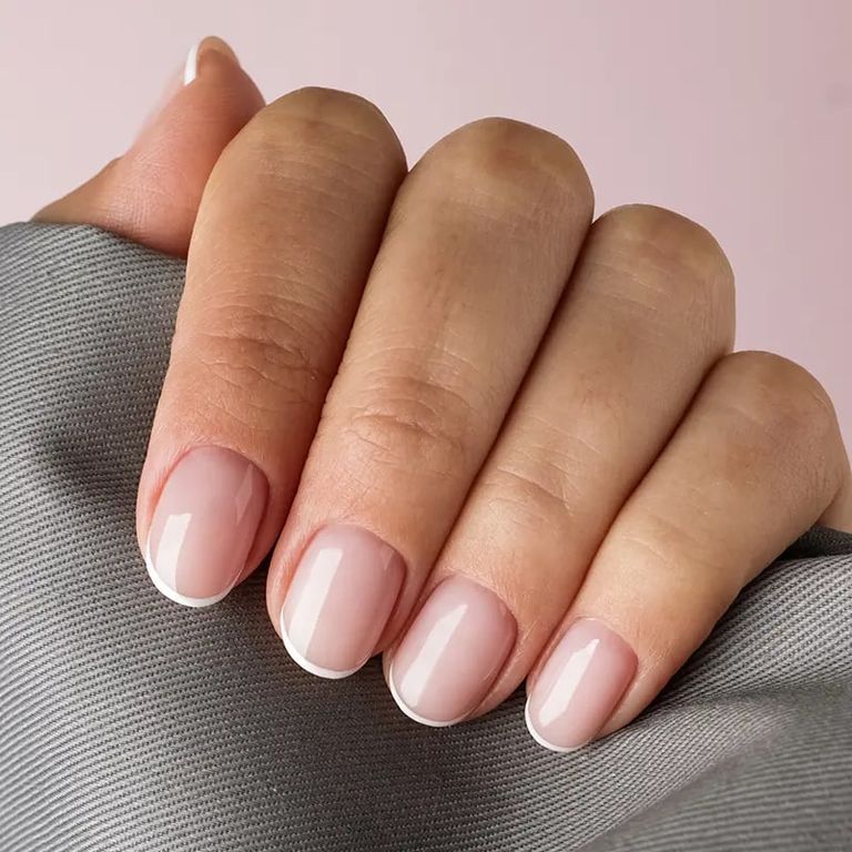 Маникюр с невесомым абрикосово-нюдовым жидким полигелем — это история любви, рассказанная на ногтях.