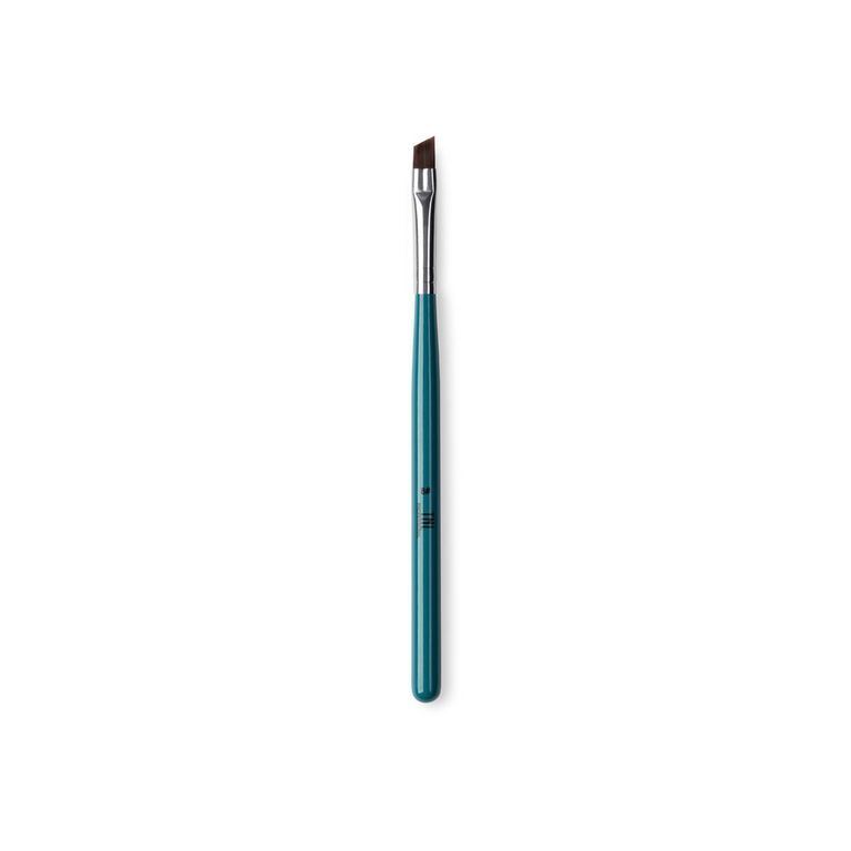 Упругий кончик кисти наносит краску плавными линиями, не оставляя просветов и подтеков. Скошенная форма создает плавные переходы цвета. Подходит для окрашивания бровей.