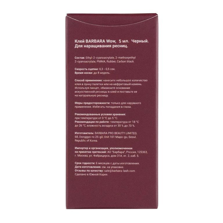 Представляем революционную нашумевшую новинку от BARBARA! Клей для наращивания ресниц WOW – мощный инструмент для работы в любых условиях. Профессиональный черный клей для наращивания ресниц WOW работает в сложных погодных условиях при влажности от 30 до 70% и температуре воздуха от 18 до 26 С.