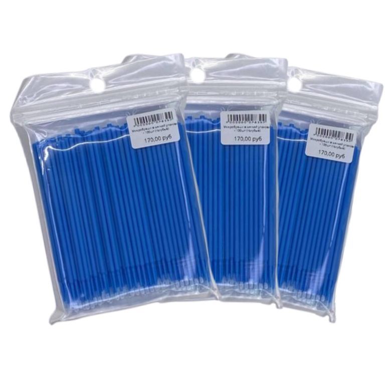 Комплект: 3 упаковки - Микробраши в мягкой упаковке, 100шт, голубые