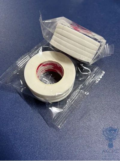 Лента липкая (скотч), шелковая, белая, 5 полос по 4мм