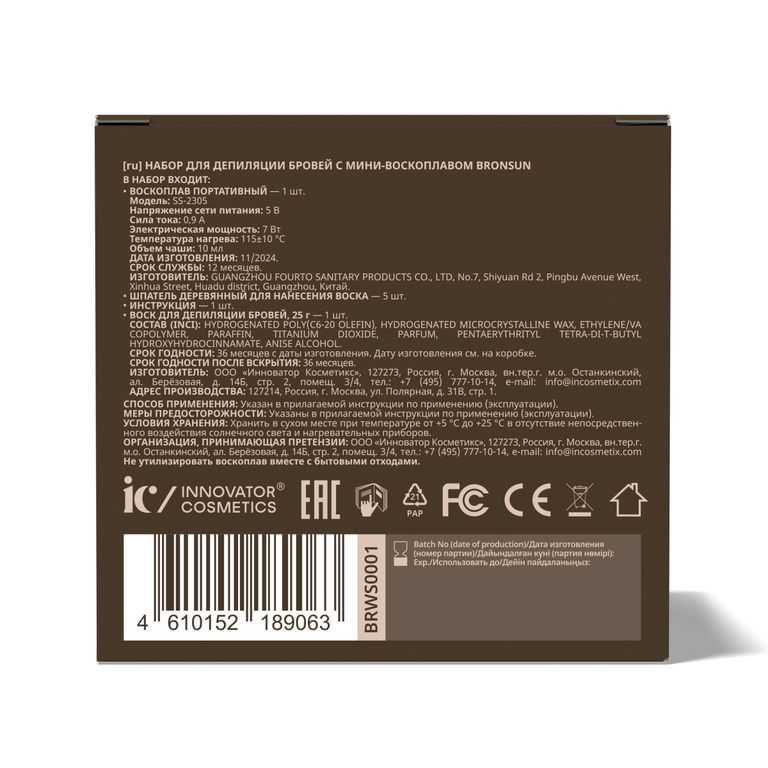 Набор для депиляции бровей с мини-воскоплавом BRONSUN