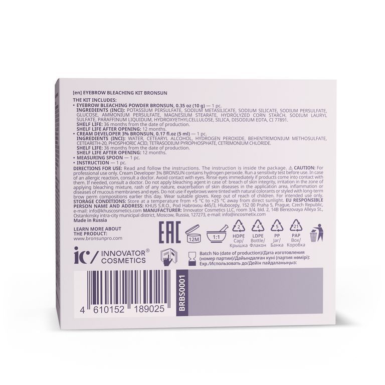 Набор для осветления BRONSUN предназначен для профессионального осветления бровей до 5 тонов с получением чистого и равномерного фона осветления. Действует быстро, осветляя волоски за один шаг. Средство позволяет добиться как мягкого, так и интенсивного результата. Степень осветления зависит от времени выдержки осветляющего состава. Обеспечивает равномерный результат осветления, не оставляет чувства стянутости кожи после процедуры.