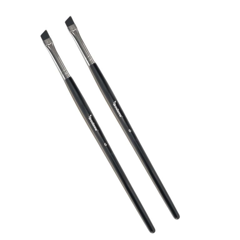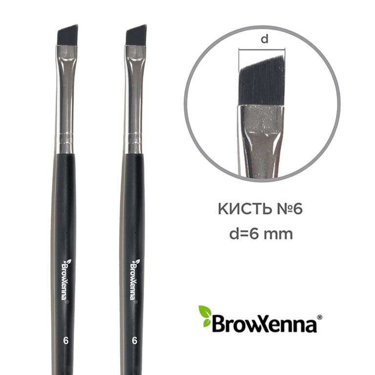 Набор кистей №6 BrowXenna® (скошенные) — скошенная кисть с упругим искусственным ворсом, подойдет для окрашивания хной нешироких бровей. Ворс мягкий и пластичный. Подходит для прорисовки точных графичных линий и тонких волосков. С кистью удобно работать, как профессионалу, так и начинающему мастеру-бровисту.