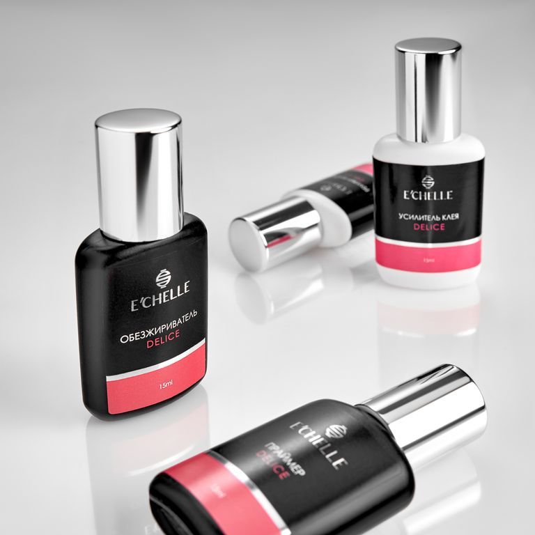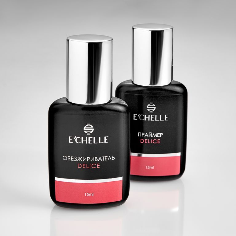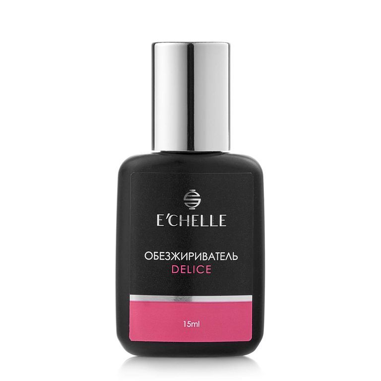 Мягкий гипоаллергенный обезжириватель E'CHELLE DELICE используется для идеальной и быстрой подготовки натуральных ресниц к наращиванию.